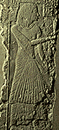 Egyptian clothes were often decorated with pleats as we see in this carving of a court official on the left. Notice that he is also wearing a wig, which would have been made from human hair. Egyptians usually kept their own hair short or their heads shaved. . . . Both men and women also wore make-up. Palettes, like the one on the right, were used to grind mineral pigments for make-up. | ![]() |